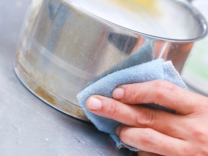 Прежде чем попытаетесь что-то предпринять дальше, чтобы снять слой нагара и приставшего жира, нужно учесть, что многое зависит от материала, из которого сделана кастрюля. Известно, что эмалированную поверхность можно повредить кислотой, а кастрюлю из нержавеющей стали легко повредить солью.