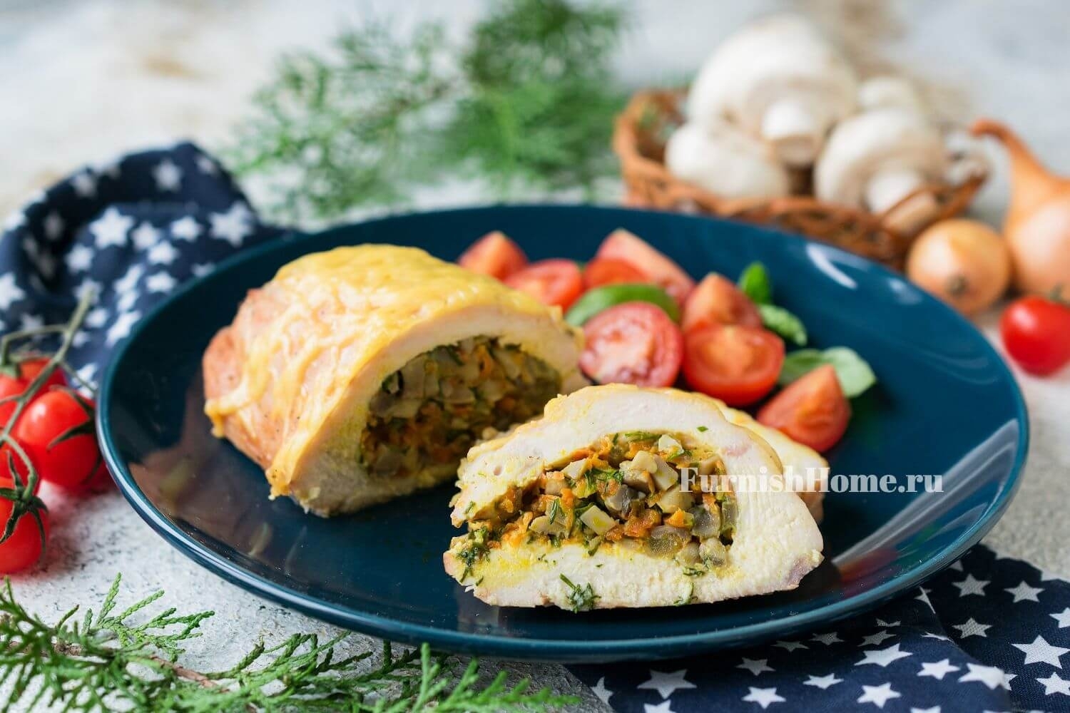 Теперь вы знаете, как приготовить фаршированную куриную грудку. Готовое блюдо будем подавать горячим.