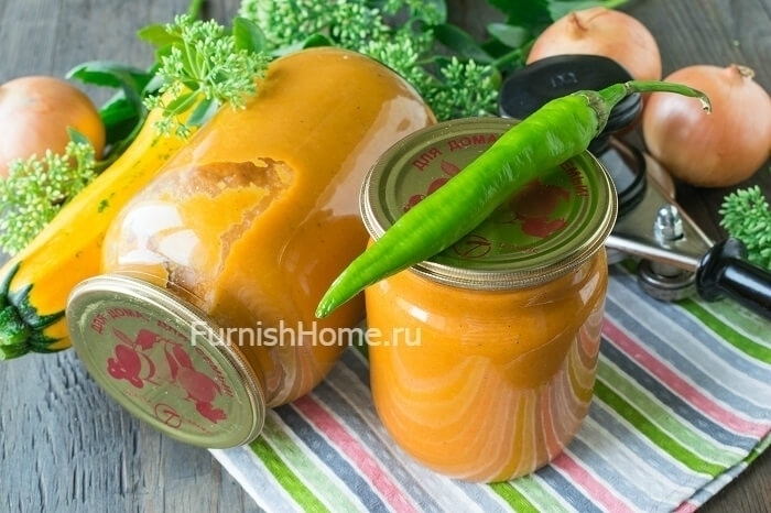Готовую кабачковую икру переложим в подготовленные банки и закатаем с помощью специальной машинки.