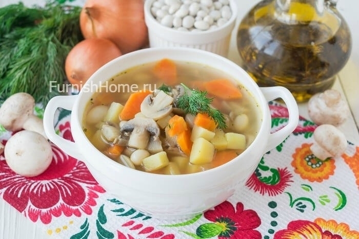 Готовим суп с белой фасолью и шампиньонами: